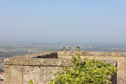 Estavam os dois tão delicadamente em cima da muralha. De passo solto e elegante, os dois apanhavam o sol do final daquela tarde de Junho. Namoravam. Elevaram-se naquele céu azul, deram a volta e pairaram por um momento. Sentiram os dois o espaço que há entre o céu e a terra. Depenicaram o vento. Namoravam. Voltaram à muralha, não se importaram com outros olhares. Namoravam. Elegantes e enamorados saltitavam nas pedras já gastas e quentes do sol.
