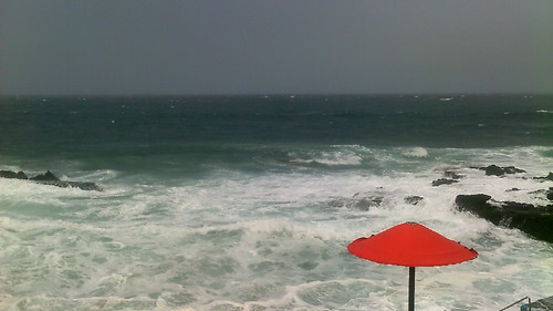 Gosto de marés vivas. O chapéu vermelho estava dentro da água, que furiosa entrava pela areia acima. Não existiam toalhas, nem pessoas na areia da praia. Ao longo do areal o mar chamava a si todo o terreno que podia. As rochas resistiam a cada onda, bebendo a espuma salgada. Os redemoinhos eram os senhores que bailavam com o vento. Ao longe as nuvens pairavam, junto das gaivotas. O chapéu vermelho observava calado, ouvindo as vozes conhecidas. No outro dia conheceria o verdadeiro areal, não aquele que ele pensava conhecer, mas o autêntico.