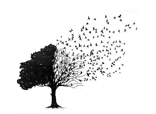 Ao chegar aos pássaros as árvores engrossam e movimentam-se