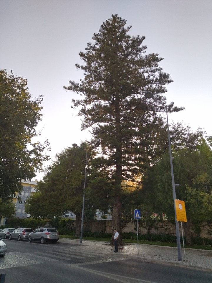 Olhando assim, vemos o quanto somos pequenos, na foto podemos ver o quanto ela é alta, e em como os seus ramos se erguem altivos ao céu, consigo imaginar a vista lá de cima, e em como deve ser um privilégio ter um ninho ali. Sabemos que o abate das árvores de grande porte em meio urbano tem levado ao declínio da diversidade de aves de rapina, e ao aumento da população de pombos, o que em alguma cidades já são uma verdadeira praga, Setúbal é uma dessa cidades.