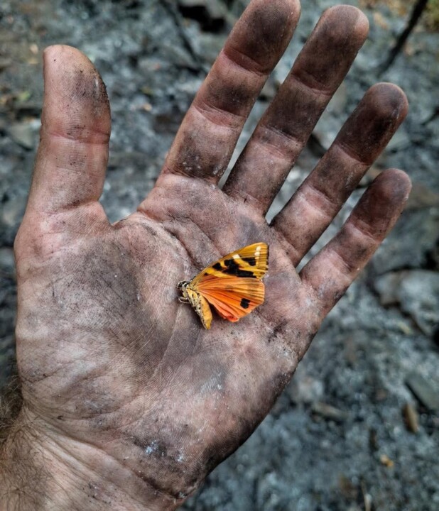 Entre o negro das cinzas e o silêncio que tomou conta da Bio-Reserva Integral do Vale da Aveleira, na Serra da Lousã, sobressai uma borboleta. O fogo preservou-lhe as asas, mas não a vida. É dos poucos vestígios onde ainda há cor numa paisagem reduzida à "tristeza" e à "fragilidade".